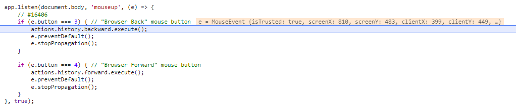 Nevertheless removing the code does not help to force Chromium to internaly not "eat" this event. Some workarounds would need to be implemented (or Chromium's source code to be modified). Moving target out of 5.0.3 as this issue is minor and the Browser forward/back defaults are right. |