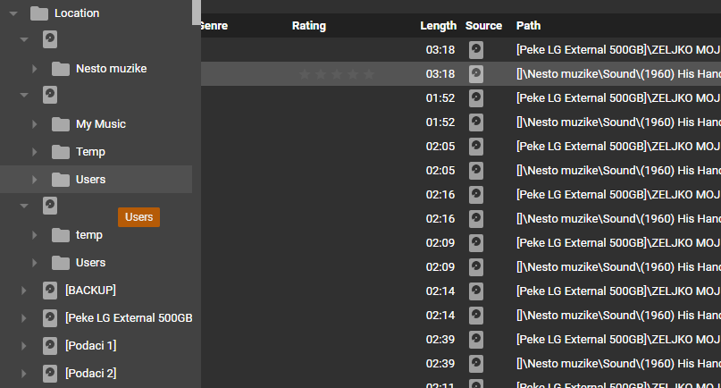 I can't replicate, tested directly on your DB and upon right-clicking a track on [PODACI] and FMFS > Folder (Library) it correctly goes to the corresponding library folder. See attached. So please share DB that you used in your test. |