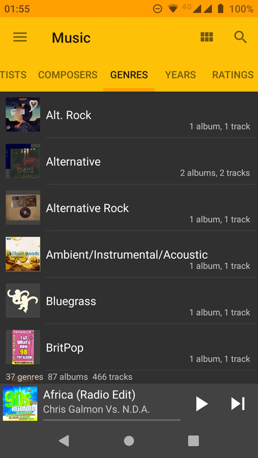 Reopen Better but not as expected, it return to genres list instead on tapped genre shortcut. |