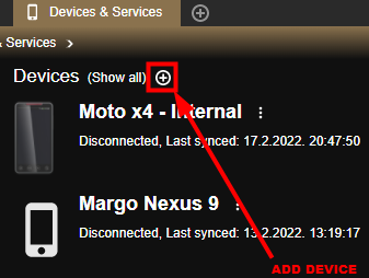 Currently User need to select "Devices and services" Tree node -> and then use [+] to add them.