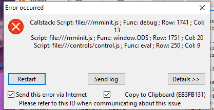 This is same user as in 0018959 It is again UI freeze log ( EB3FB131 ) This time on line ODS('**** focusControl: ' + this.constructor.name); in control.js which is particularly strange as it just tries to output debug message. Maybe the 'focus' event is called too often for some reason? The DbgView part is missing in the ELF. If it is still reproducible for the user then please try to catch it in standard debug log using DbgView and attach. Thx EDIT: It would be also valuable to try: 1) whether the freeze is reproducible with regular build too? (i.e. not the debug to be sure that it is not a false positive freeze by Eureka) 2) whether the freeze is reproducible with using MediaMonkey_NoGPU.bat (i.e. without HW acceleration) |