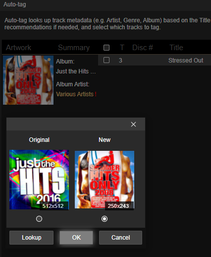 | Summary | 0019169: Auto Tag: There is no indication that searched album art is preferred over existing | ||||