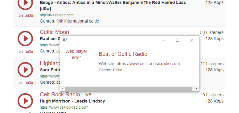 Fixed stream playback when clicked on pls or m3u .. however clicking on play button opens popup window which is not working even when opened in chrome so it's issue on server's side. |