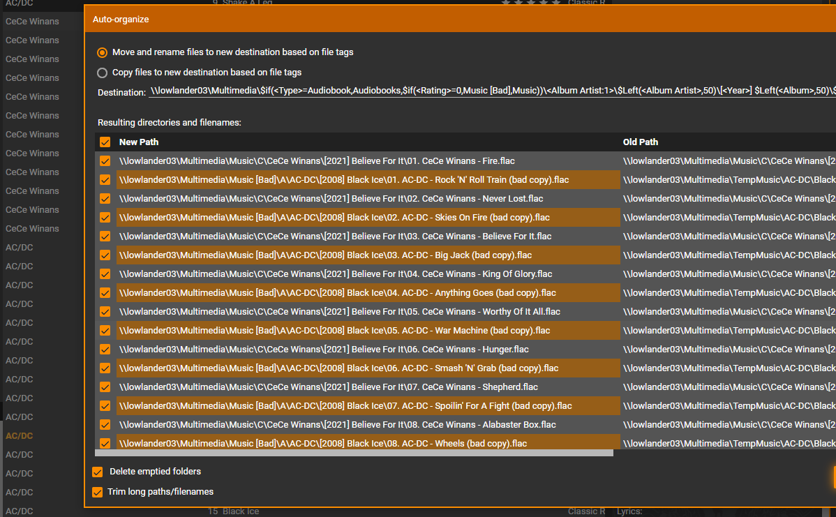 | Steps To Reproduce | There are no repo steps know, restarting MediaMonkey does not resolve this. Speculation would be that using Choose Fields elsewhere (like Auto-Tag) may have set a sort order for Auto-Organize Files. | ||||