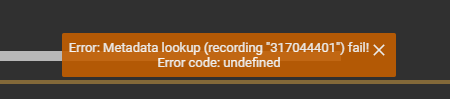 | Description | The Metadata lookup errors: undefined / invalid mbid. don't really mean anything to users--it just tells them that the lookup failed but without clarity as to why (especially since the errors seem to occur in a non-deterministic fashion). Also, as far as I can see, they're not currently translated. Would it make sense to fix this with something like: Error: Metadata lookup (<source>) - Fail: <track name> OR Error: Metadata lookup (<source>) - Cannot create connection. ('Cannot connect' would be better, but this is the only string we have atm--we can change it in the future). All of the above strings are already translated and since 'undefined' and 'invalid mbid.' don't mean anything to the user, I'm not sure there's any sense in communicating that. Is any information being lost in this proposed change? Is there anything else we should communicate? The messages are still kind of vague and it's unclear what the path to resolution is. e.g. if they're transient errors, perhaps append 'Try again later.' (although atm the only available string is 'Please try again') ? | ||||