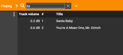 1. Typed 'sa' in playing 2. Tracks are correctly filtered but # do not represent Track Actual order. |