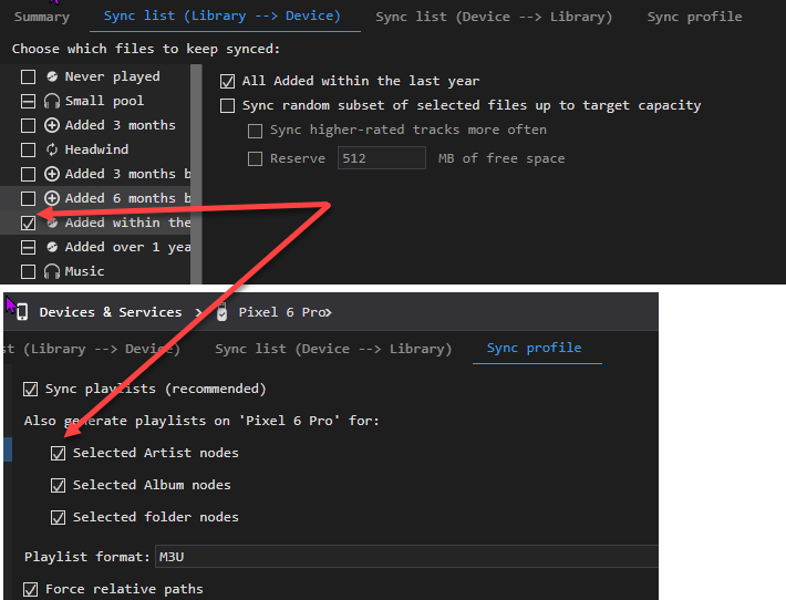 | Description | Related to Issue 0018743 I tried to reopen that issue to ask a question, but I get Access Deny. I used to be able to do this ... ? My question was as follows: Has the new Sync All option for Collections, created an issue for sync playlist generation? What should happen if I request that a whole Collection be sync'd, and the Sync Profile specifies that playlists be generated for "Selected" Artist, or Album etc? ATM the request to generate playlists is ignored in this situation. is this OK? .. I don't think so. I think that the expectation would be that playlists were generated. See attached image | ||||