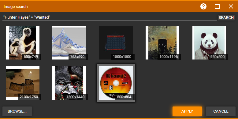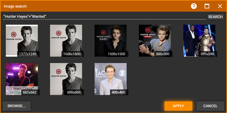 | Description | If user edits Image lookup Search term and it contain space it will not return correct results. eg. search for ["Hunter Hayes" + "Wanted"] will not return any usable results but ["Hunter Hayes"+"Wanted"] will. | ||||