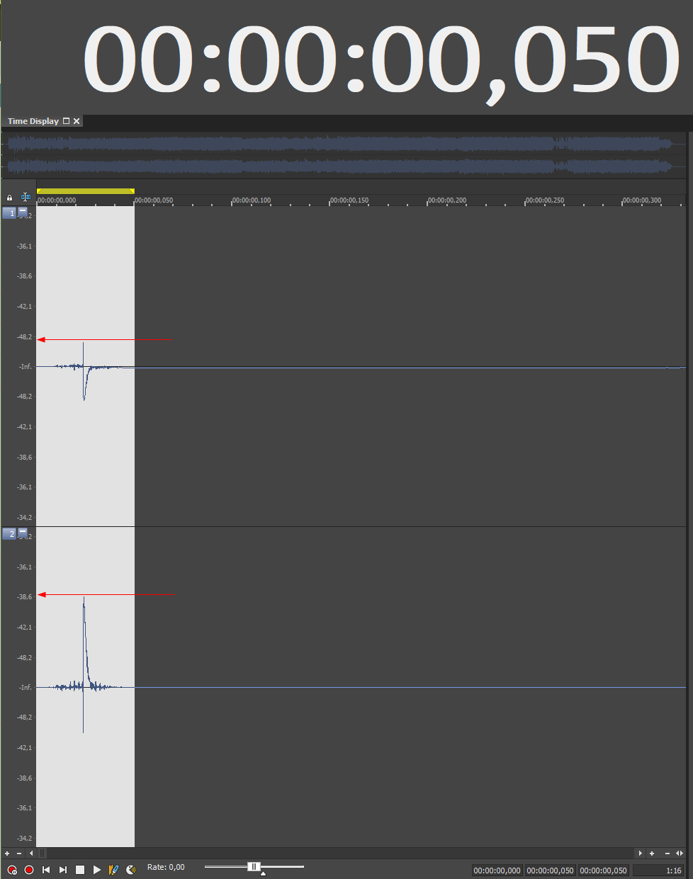 | Description | Remove Silence is too sensitive and fail in some cases. Further testing Found that in 99.9% of cases less than first <100ms contain peak of -35db (See pic from sample track) Solution: a) Lower sensitivity to trim all lower than -30db (Maybe undocumented INI setting) b) Do smarter remove silence eg. ignore peeks for first 100ms (it is often used for padding) and check remove silence after that time) c) Combination of a) and b) | ||||