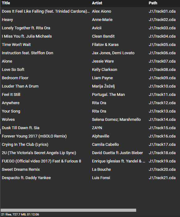 Test note: Same 21 tracks are burned in both MM5 and MM4 on 74min/650MB