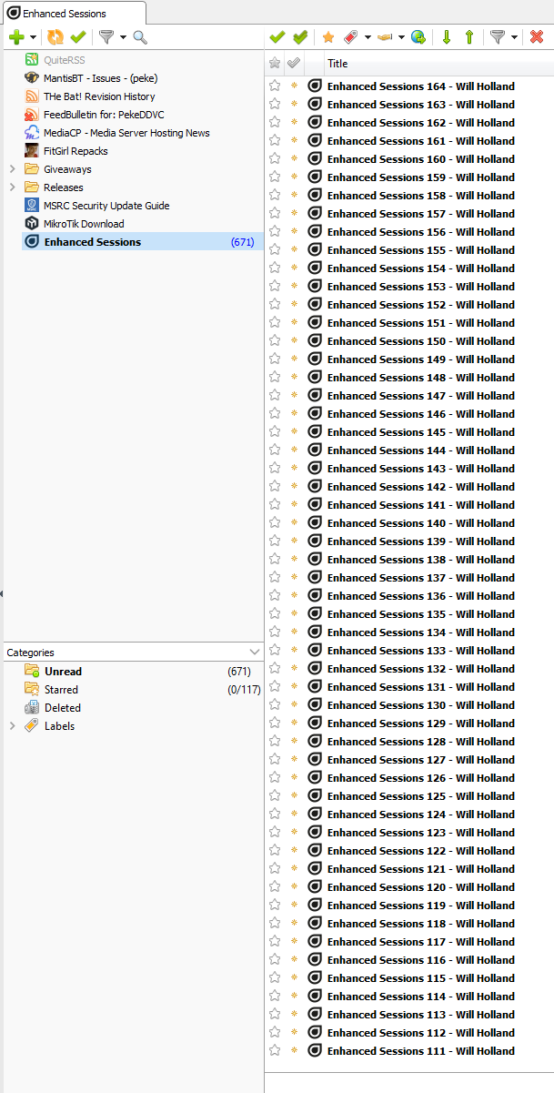 | Description | Podcast https://enhancedsessions.radiopush.net/podcast.xml imports in MM with 187 episodes, but if I import in QuiteRSS or Firefox Live feeds it shows 671 Episodes. | ||||