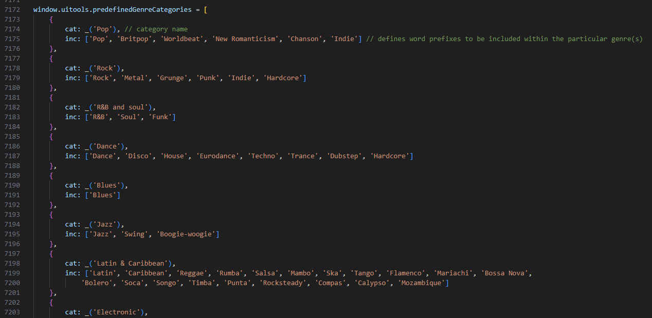 1. => fixed in 2810 2. Is defined in viewHandlers.js and can be easily modified there. Alternatively addon can be easily created to override the default genre categories defined in window.uitools.predefinedGenreCategories array Asked users to suggest the enhanced definition to include it later in native viewHandlers.js or as an addon: https://www.mediamonkey.com/forum/viewtopic.php?p=511162#p511162 |