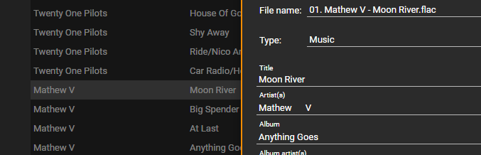 | Description | When you have multiple spaces in a tag, it isn't shown as such in the Filelisting. In-line edit does show it. | ||||