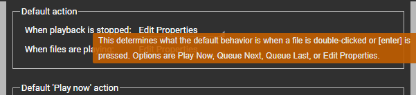 - On Player, anywhere in Default action or Default play now action triggers tooltip, but not for Pop-up display, where individual items trigger tooltip