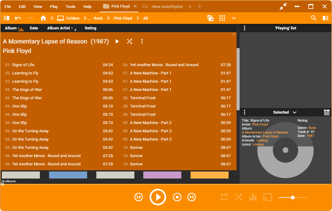 Great! So hopefully this issue isn't too difficult to solve. Please don't forget the ?related report? in the forum thread https://www.mediamonkey.com/forum/viewtopic.php?t=106262 in which a similar problem occurs for _library tracks_ in a list view (but it might be a completely different bug). |