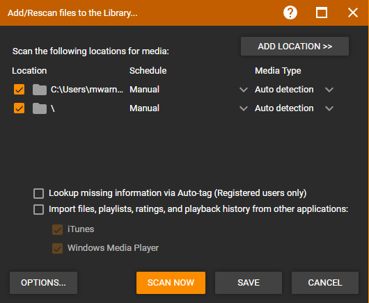 | Description | On first run of a Portable Install the Setup wizard and Add/Rescan Files show \ location to be scanned. It's unclear what location this is. | ||||