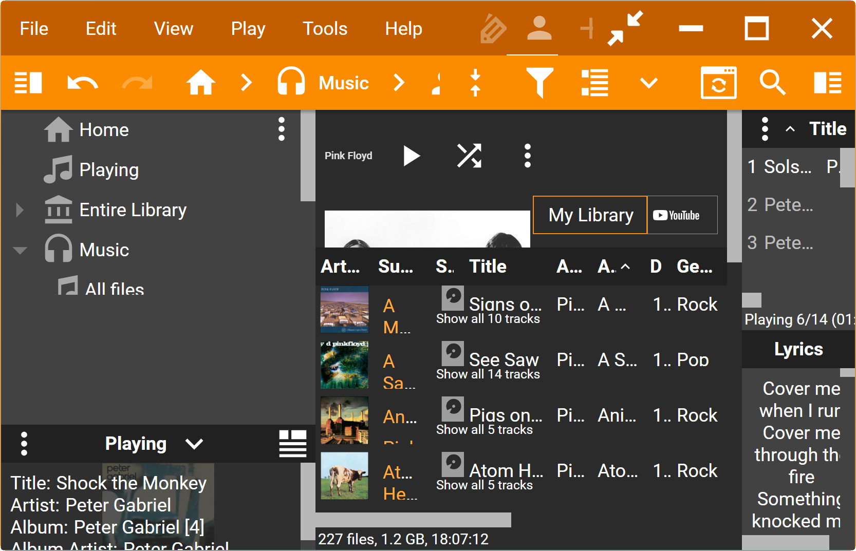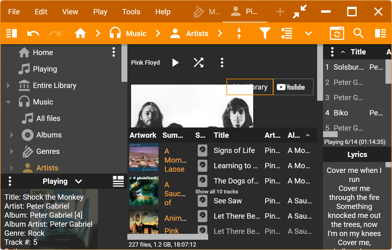 | Description | Take a List (by Album) as an example, as on the screenshots. Here is what should be resized: 1. width of the right side bar; 2. height of the Preview panel in left side bar; 3. height of Info panel; 4. width of all columns in the main filelist and Playing list including Artwork. All these things are set by program and cannot be done in skin. The 4-th one is most problematic because there are too many columns that should be resized manually after each changing of size. The issue is more noticeable when sizes are much different, for example when going from 12px to 24px or even 36px. You cannot see it with your skins when you change @baseFontSize from 13px to 15px, so I got the later screenshots with the modified info.json of Material Design, adding just this: , "24": "24px", "36": "36px" | ||||