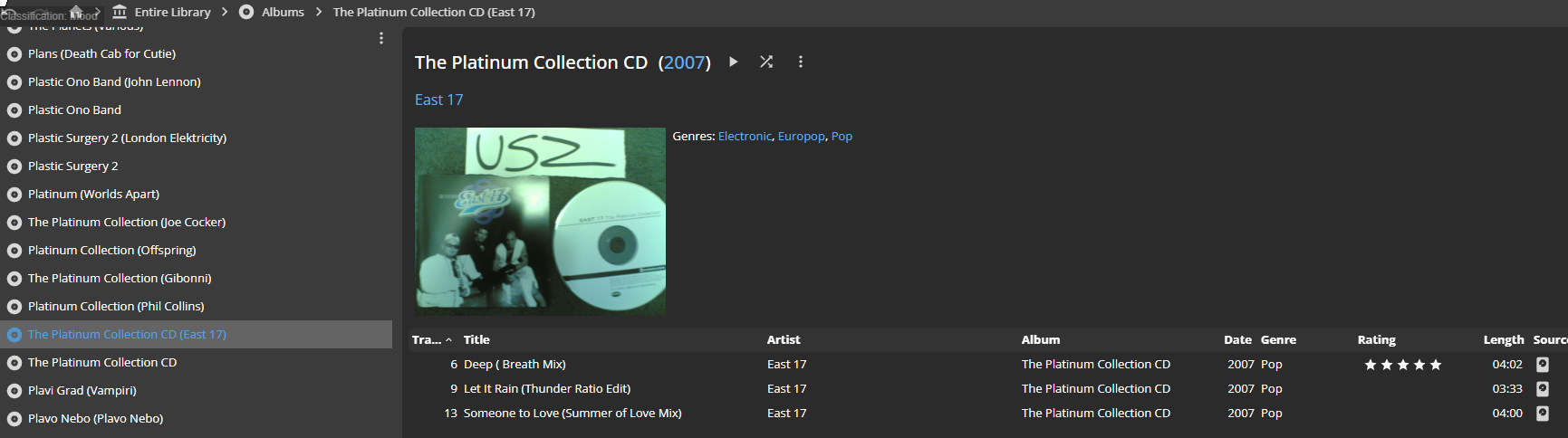 | Steps To Reproduce | 0. Set MM to List View and make sure that Artist, Album, Album Artists columns are visible 1. Open One Album in MM -> Entire Library -> Folders -> [FULL ONE ALBUM] 2. Select Few Tracks from Album -> Properties -> Delete Album Artist -> OK Which will separate Album to Two albums NOTE: @Ludek noted it in 0020978:0075710 and he is right that FMFS correctly works. 3. If you select tracks that have/have not Album Artist -> Properties it will Show things correctly according to 0016388 eg. not selected 4. After fixing 0016388 If you select all tracks from album both with and without Album artists it will show Properties for multi edit like all tracks have same filled Album Artist and there is no way to tell that user needs to check Album Artist in order to update/correct missing information Expected If Artist+Album(Album value is not Empty) is same for all selected tracks and some selected tracks have same Album artist value (or one have value and others have Album artist empty) then Album Artist Check Box should be Selected as clicking on OK will not trigger non needed tagging or wrong tagging like pointed in 0016388, but would actually fix/fill correct information for Album artist for the whole album. | ||||