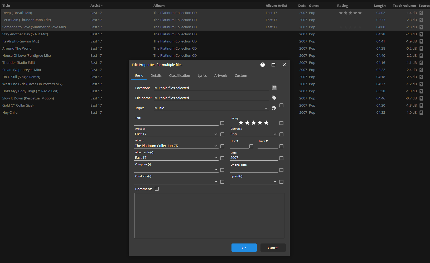 | Summary | 0020986: Selecting all tracks from same album do not suggest filling missing album artist information in multi edit properties | ||||
