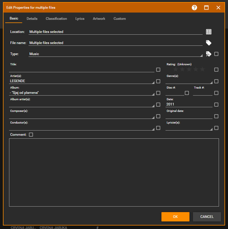 1) Peke, nothing is suggested because in the example you provided, no track with an existing album artist entry was selected! 2) Ludek, an alternative approach for the Properties dialog to work similarly to Auto-tag could be: - Display an '!' in red whenever there are conflicting values for a field . . Optional: for any field with a "!", clicking the dropdown would show the available values to select from. - When all values for a field either equal x or "", display the value in the 'suggested' color (same as used in the Auto-tag dialog) If we agree that this makes sense, we should probably add it post-2024.2.0 |
