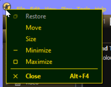 | Description | There is no way to Minimize / Restore / Maximize / resize / move window by keyboard, since there is no button which could show system menu on Alt+Space. MM4 had it. What is interesting, there is the data-id="iconElement" button, but it is always hidden and I don't know if any skin has it displayed. There should be an option in the program that could toggle its visibility. However, that menu has missing Size and Move options, which are more important to have their keyboard alternatives. | ||||