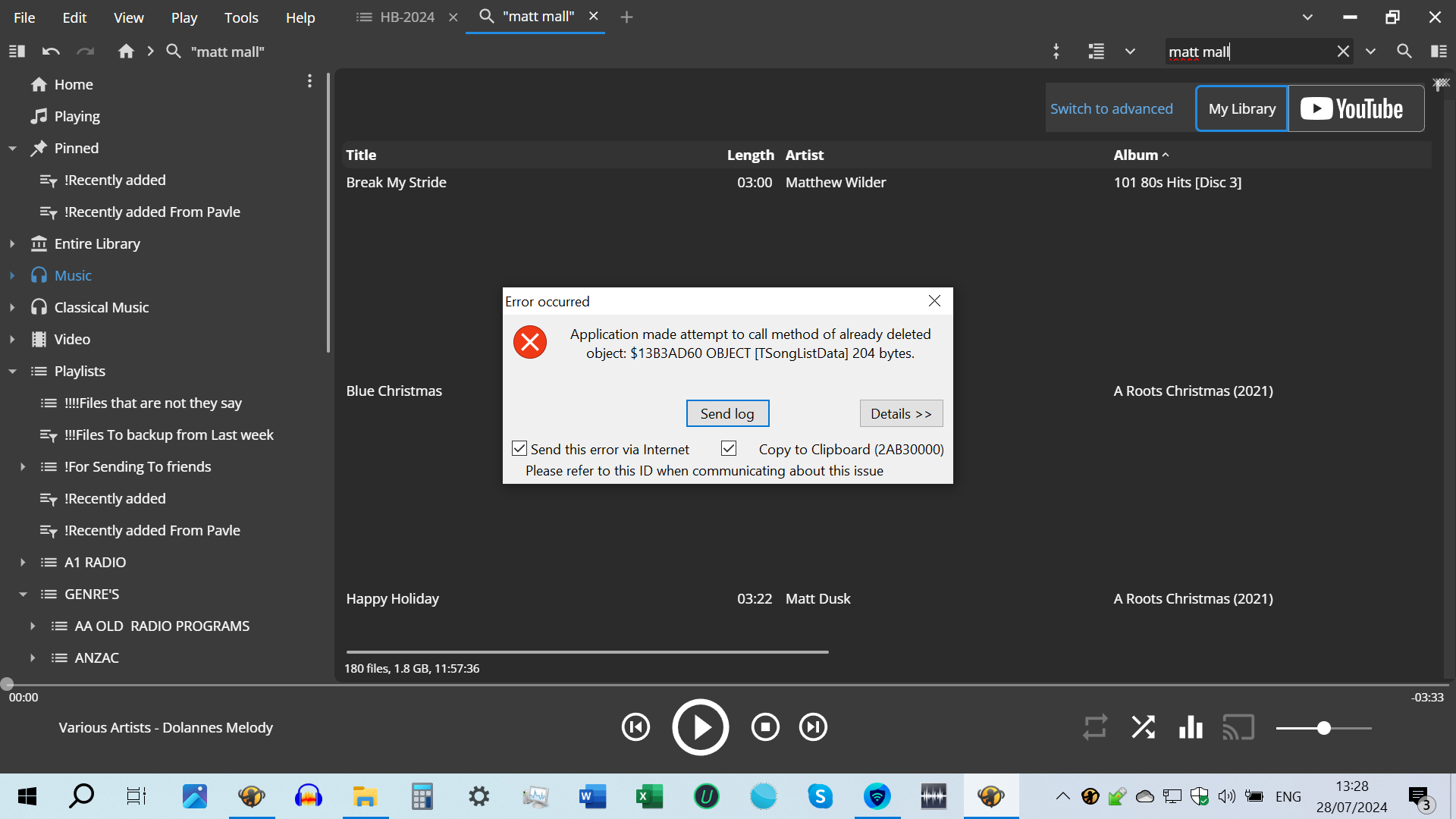 MMW 3037 was playing in the background and crash 2AB30000 occurred. Note: at the time of the crash, I was experiencing some internet connectivity issues--not sure if that's related. Crashlog was submitted. |