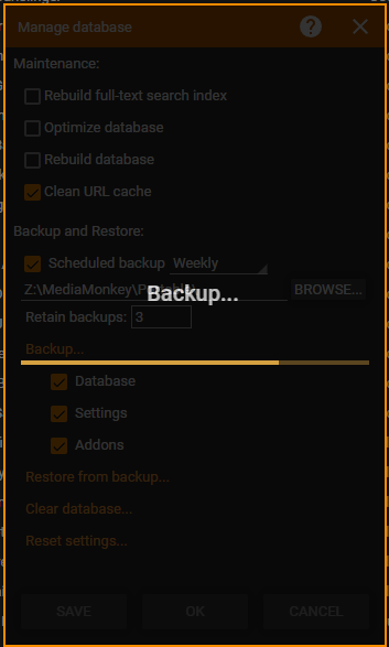 For the compression/zipping part I don't have a progress (just estimation) so it is going from 0% to 100% in one minute and then again.. This would mean that compressing your large ( > 2GB) DB took more than 2 minutes on your PC, the same DB takes around minute on my PC.. Maybe we should add an option to disable compressing when doing the backup to speed it up? |