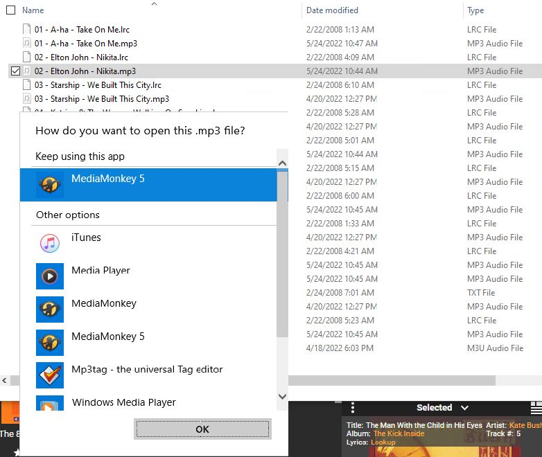| Description | Tested upgrading MediaMonkey 5.0.5 --> MediaMonkey 2024.3038 on Windows 10 and it's not listed as a choice of application: - when choosing a default app - when choosing an app to open a file | ||||