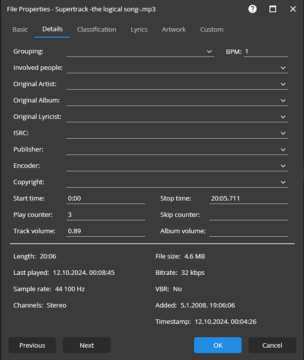| Description | Some tracks Length are incorrectly read Actual Track length is 04:36 (44.1 / 140 kbps) but MM reads it as 20:06 (44.1 / 32 kbps) As a result of that, Seek Bar appears not working correctly even Wave Bar shows track is really 04:36. Sample Track is on FTP | ||||