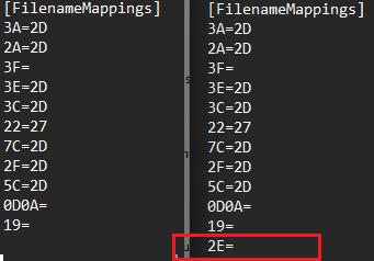 EXPLAINED: I added 2E= there manually in the past in order to be able replicate 0019916:0071470 But with the mapping 2E= all dots are removed => which is not desirable, MM should auto-remove just the leading dots (making hidden files on Linux NAS) |