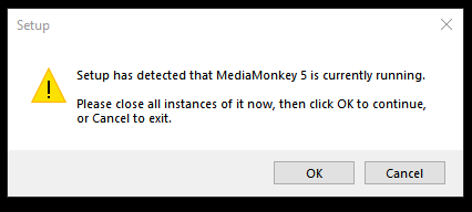 | Description | When trying to install MediaMonkey 2024, it warns that MediaMonkey 5 is currently running, while it's actually MediaMonkey 2024 is already running. On a side note, MM is running as a Portable Install, and I'm doing a separate Portable Install. I wonder if this message can be delayed till after install directory is chosen and only be shown when install directory equals running MM's directory? | ||||