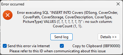 | Description | 1) Clean install of MM 2) Scan some files with artwork/covers => crash "no such column: CoverCount" | ||||