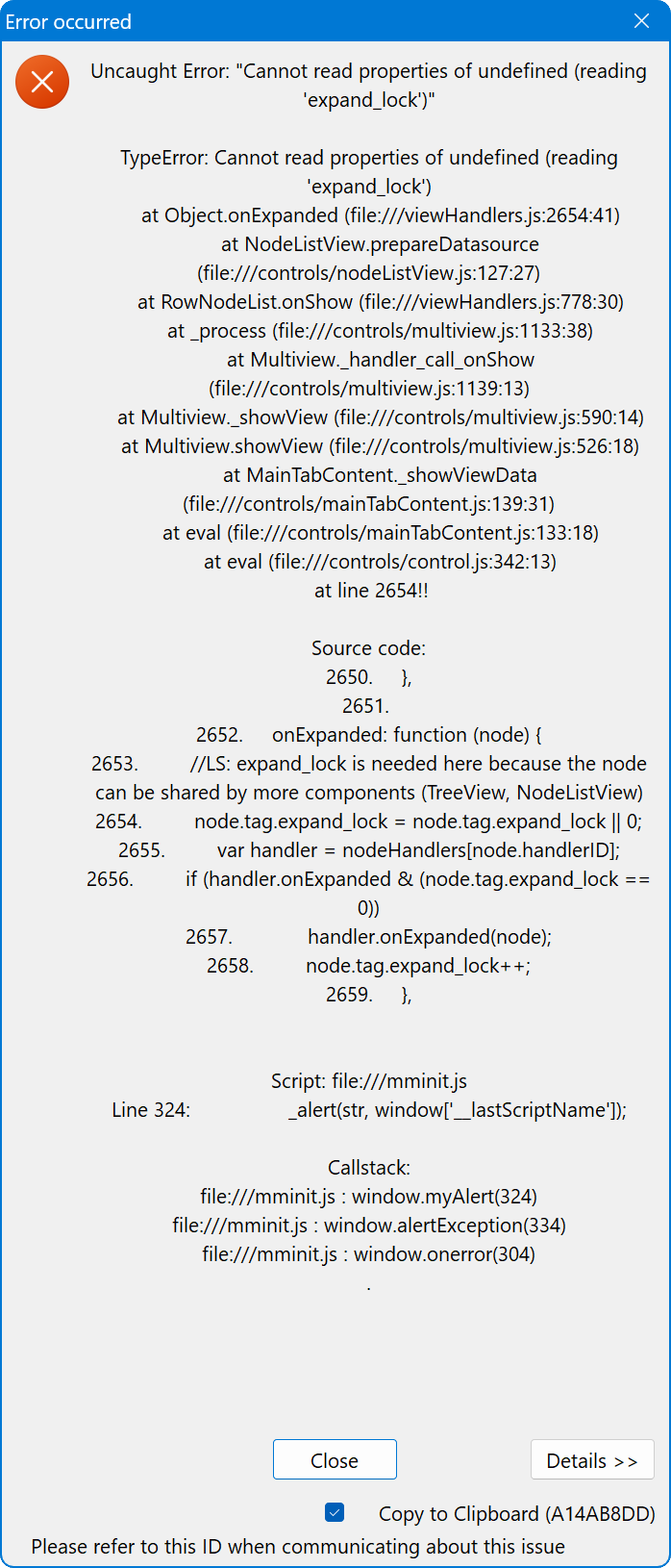 Summary0021666: Uncaught Error: "Cannot read properties of undefined (reading 'expand_lock')"