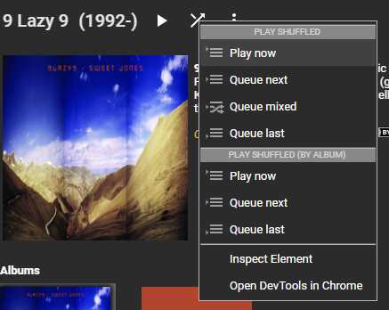 The menu is there, but user needs to right-click the shuffle or play buttons.. I agree that it is not clear that right-click can be used, so either we could change the menu to be shown on left-click or add the dropdown arrow ? |