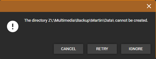 All AV's resolved on 3171. However I think it would be better if MediaMonkey auto-applies missing \ at end of Path, instead of providing error to user. Particularly because the error doesn't inform user of actual issue (the error has the missing \ in the Path). Cancel did not stop the backup as expected, pressed Cancel a second time and backup proceeded. At the end showed error again and then stated backup completed. Log supplied. (Ignore did basically the same thing). No backup was found. |