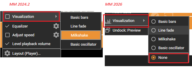 I see that visualization menu has changed in 2026 (against 2024.2), assigning to Michal to look into it.. |