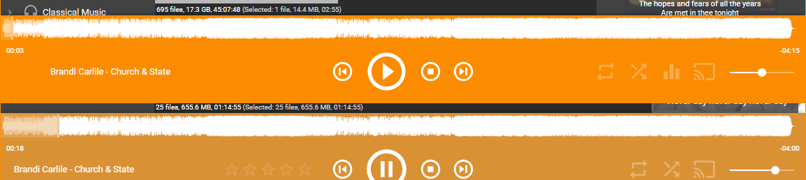 | Description | For many track waveform is drawn in such a way that it's most of the time at the highest possible value, which makes it less useful to seek such tracks. | ||||