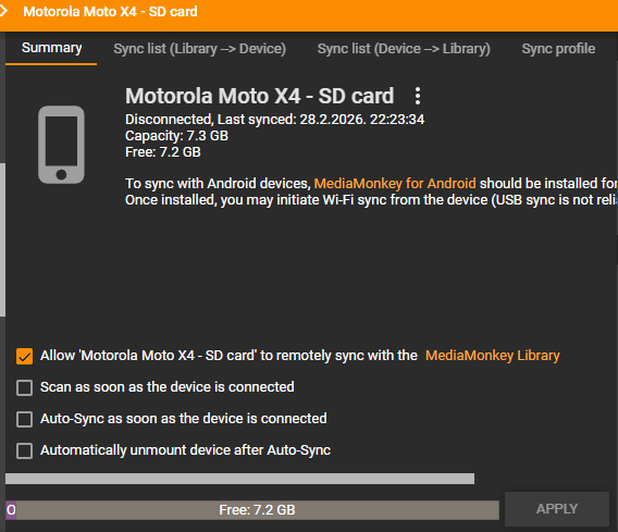 | Description | Device SDcard Profiles do not have checkmark for WiFi Sync, while internal storage have it. In some cases users do not want to sync Internal storage, but wants to use SDcard aand can't enable WiFi Sync for them. | ||||