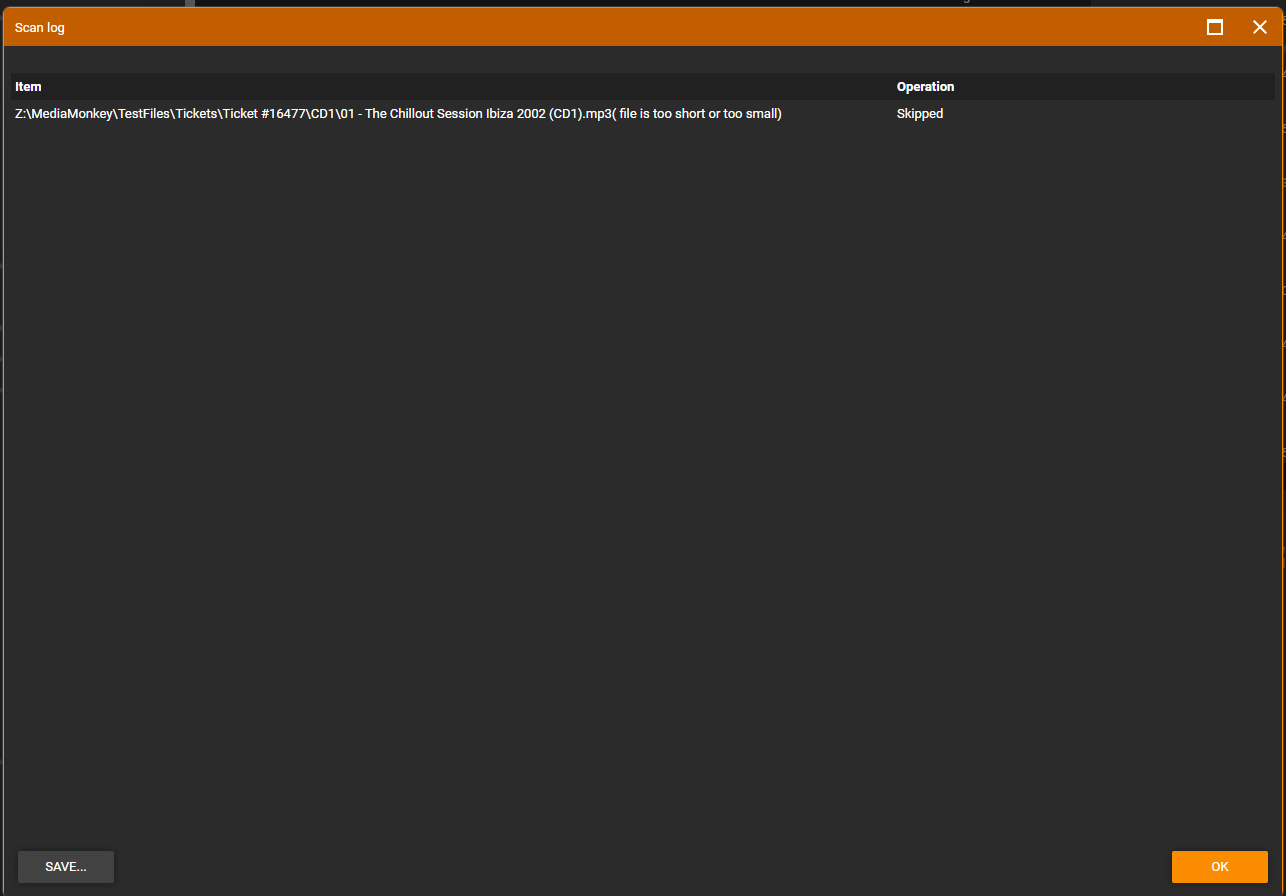 | Description | In the scan log the space is after the ( instead of in front of it. Ideally the Item column is split in 2 columns: 1 File with filename 2 Reason/error, reason why file wasn't added | ||||