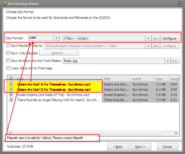 | Summary | 0002242: Data CD Burning: Warnings when path / file length exceeds specified parameters | ||||