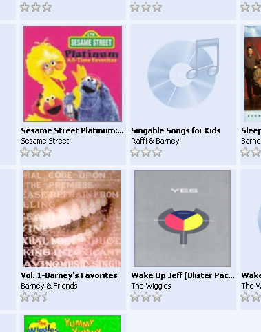 --> In both cases, many albums have incorrect art in the view (opening the albums via 'enlarge...' reveals that the correct art is contained within, but for some reason, the view is showing many mismatches)