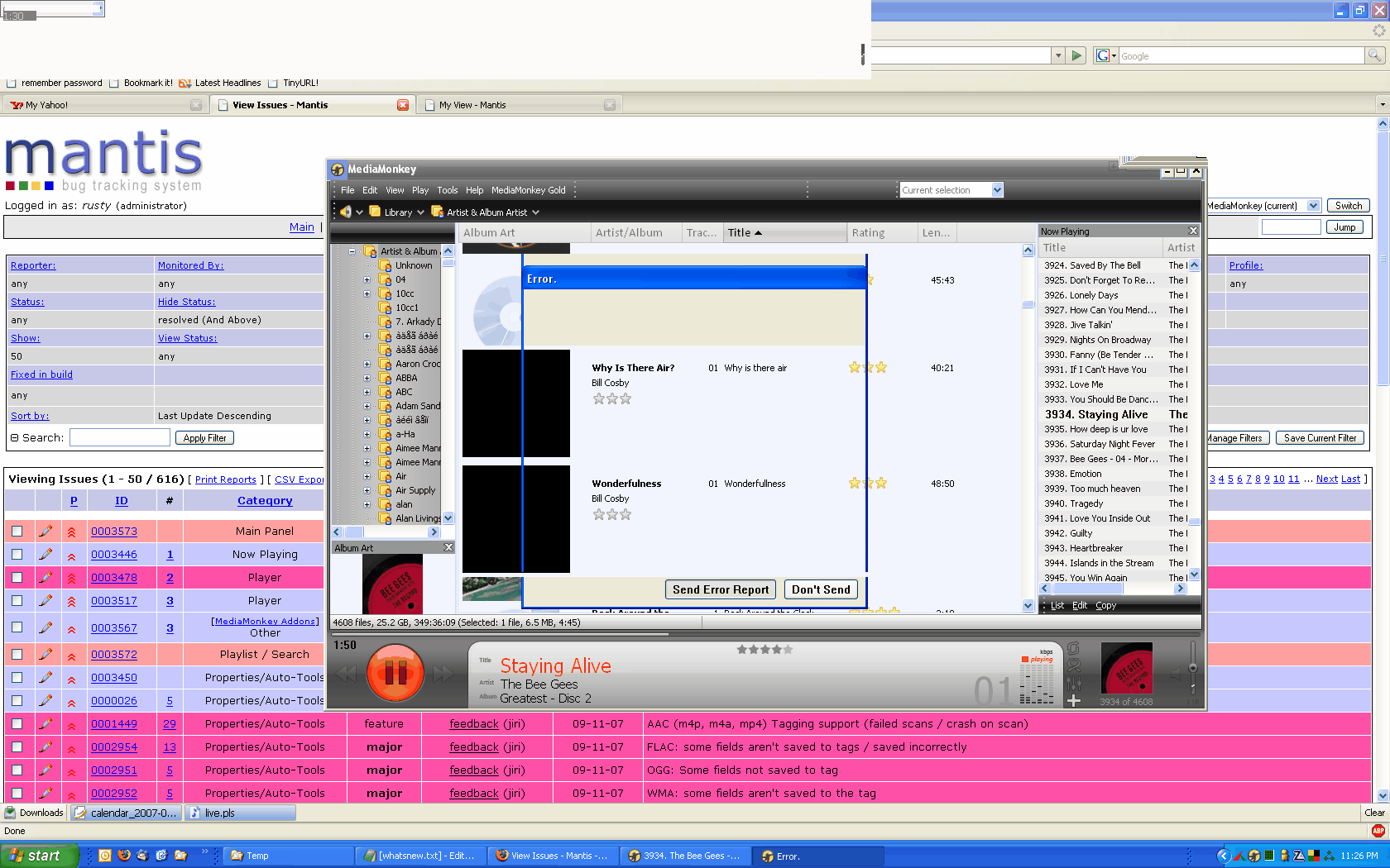 | Description | Build 1073: Selected Artist Node = Aimee Mann and tried scrolling downwards with the Wheelmouse even though there weren't any other albums to scroll to. --> AV (Eurekalog sent) On a second and third occasion, by simply using the wheelmouse to scroll up and down, the UI went haywire. Eurekalogs for this were sent as well. A screencap is attached. | ||||