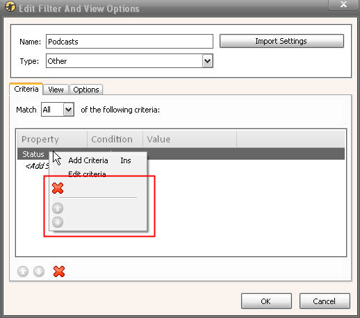 | Description | Criteria Context menu not showing correctly in Edit Filter and View Options. Text for Delete, Move Up, Move Down is Missing Example picture Attached | ||||