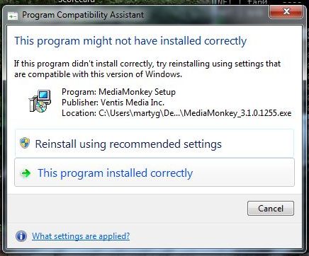| Description | Whenever I install MM 3.1 Beta on W7 RC, I get the following popup from the OS Compatibility Assistant. (pic) This includes 3.1.0.1255 (RC3). It just appears once after installing each new update. I have just been ignoring this. MM functionality does not seem to be affected. | ||||