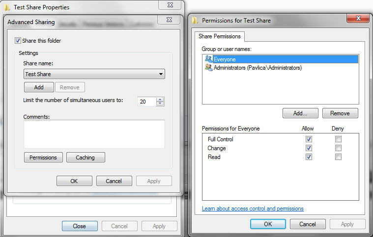 From Peke over IM: I'll try to make Few Screen Shoots Of Settings. Anyway I can't replicate. It Is working Without Problems On My PC. Here is what I tested using 1271: 1. Created Folder c:\Test Share 2. Share It on Network and used Set access rights like in pictures "File Sharing.jpg", "Advanced Share.jpg" 3. Set MM File Monitoring According to "MM File Monitoring.jpg" 4. Set MediaMonkey Icon Properties like on Image. 5. start MM 6. Use Windows Explorer to move some folders to c:\Test Share\ 7. Library gets Updated immediately to reflect changes 8. Repeat step 6. but only using Network -> Test Share instead of c:\Test share 9. MM library gets updated |