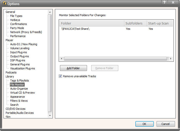 | Steps To Reproduce | 1) Share \\PUZZLE30\Users\Rusty\Music with Everyone 2) Browse the network share to ensure that it works 3) Scan the folder with MediaMonkey --> tracks scan 4) Enable the file monitor with the Remove unavailable tracks option, + startup scan 5) Remove Tracks / Add tracks --> MM doesn't detect the changes--even on restart (in fact it appears that the startup scan isn't even occuring! ) | ||||