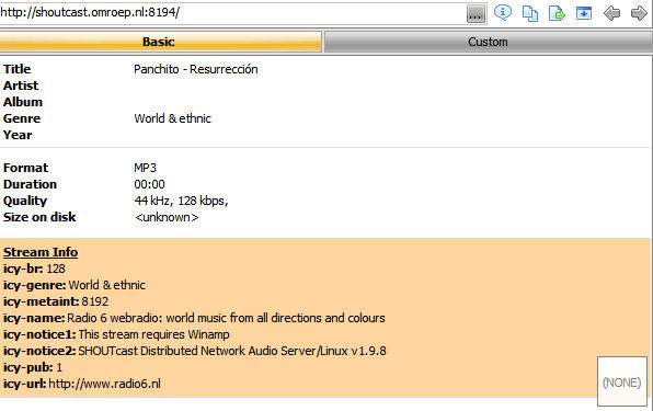 Added picture where it is clearly seen that Stream info contain very valuable Info. Initial Radio Station info = icy-name Genre = icy-genre Stream Bitrate = icy-br |