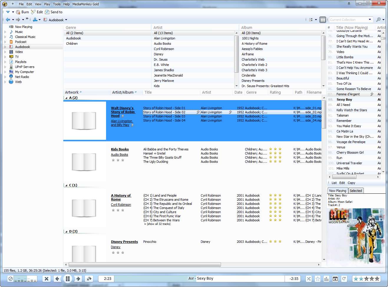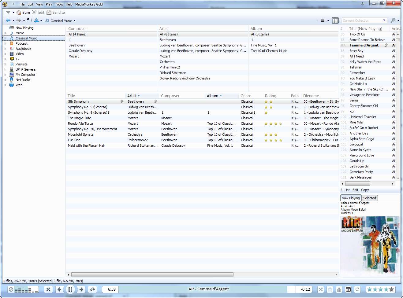 Petr, there are a couple of additional issues with non-default views: -Music Collection (AA+Details): Artist/Album column isn't enabled for this view. -Classical Collection (AA+Details): Artwork column is in the middle of the screen (after Composer). It should be the first column. Also, the Artist/Album column isn't enabled for this view. -Podcast Collection (Details): Track Browser not enabled -Podcast Collection (AA): Author Column should be Composer?? -Podacast Collection (AA+Details): Artwork column appears in the middle of the screen (after Artist), instead of in the first column. Stacking is by Podcast, however, the Podcast column needlessly indicates the podcast for each episode. -Audiobooks (Details): Track browser should be enabled -Video (AA+Details): Artwork appears after Series instead of at first column -For ALL Collections (AA and AA+Details): for any groups, 'Unknown' appears as the first group instead of as the last group. |