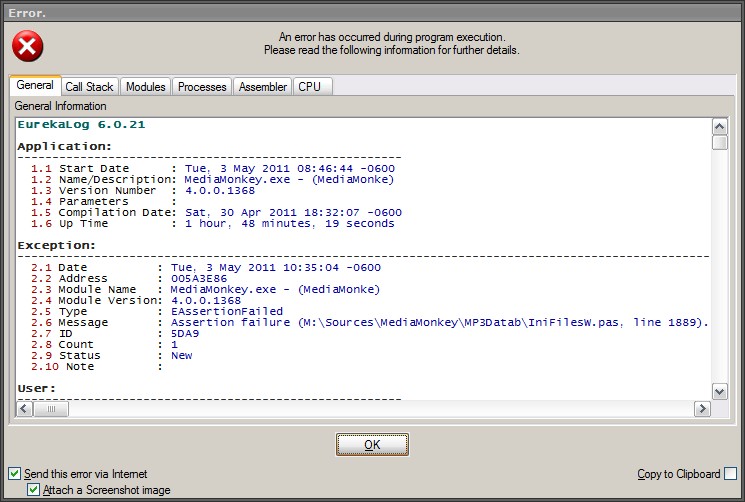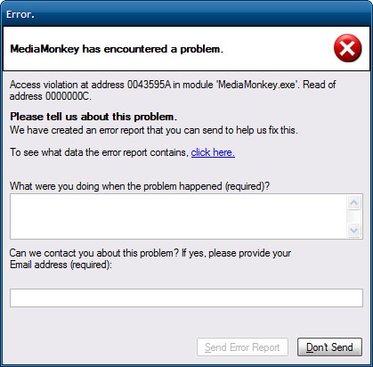 DescriptionWhen the debug window pops up you can click View Report to get a detailed view of what's to be send to MediaMonkey. The problem is that it's somewhat unclear you can cancel from that window and also you can't return to the eLog window to enter comments or email address. I don't think it's a bad idea one can enable disable specific parts of the report in the View Report window, but clicking OK should take you back to the eLog window to then allow user to submit, add comment/email or cancel the submission.
