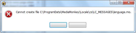 Tested with 1376, and some languages (e.g. CZ) generate the following error: Cannot create file C:\ProgramData\MediaMonkey\Locale\cs\LC_MESSAGES\language.mo Could this be related to 0007846 (installation problem with scrobbler .mmip)? Related tweak: the message dialog has no text in the buttons (see attached). |